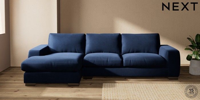 7.2.10 Houghton Deep Relaxed Sit Large Sofa Chaise - Left Hand Luxe Chenille Navy Blue Large Square Angle - Gunmetal | Made Click here to use our website with more accessibility support, for example screen readers