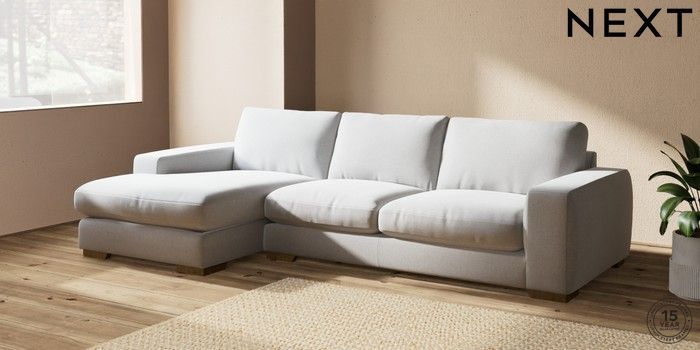 7.2.10 Houghton Deep Relaxed Sit Large Sofa Chaise - Left Hand Natural Mix Light Grey Large Square Angle - Mid | Made Click here to use our website with more accessibility support, for example screen readers