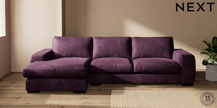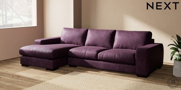 7.2.10 Houghton Deep Relaxed Sit Large Sofa Chaise - Left Hand Plush Chenille Dark Plum Purple Large Square Angle - Dark | Made Click here to use our website with more accessibility support, for example screen readers