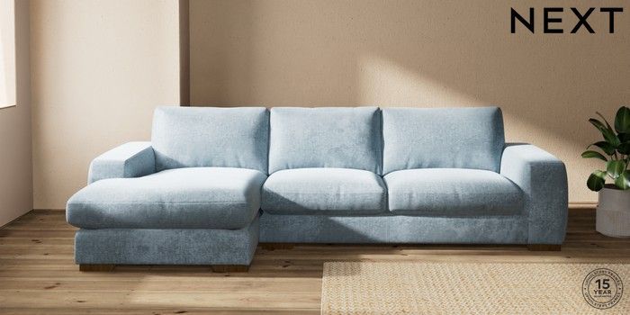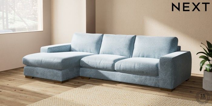 7.2.10 Houghton Deep Relaxed Sit Large Sofa Chaise - Left Hand Plush Chenille Light Blue Large Square Angle - Mid | Made Click here to use our website with more accessibility support, for example screen readers