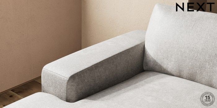 7.2.10 Houghton Deep Relaxed Sit Large Sofa Chaise - Left Hand Plush Chenille Light Grey Large Square Angle - Mid | Made Click here to use our website with more accessibility support, for example screen readers