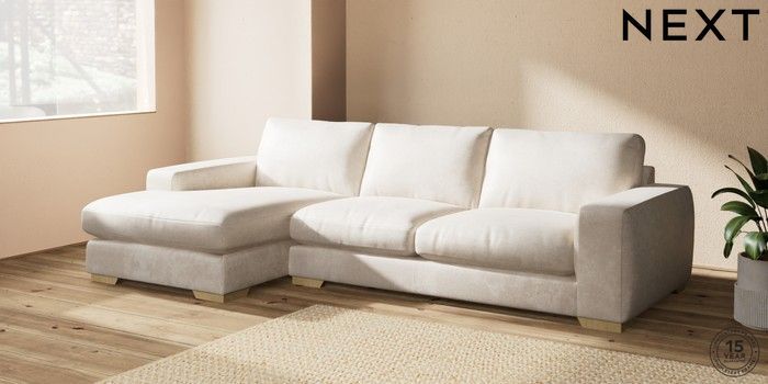 7.2.10 Houghton Deep Relaxed Sit Large Sofa Chaise - Left Hand Plush Chenille Oyster Large Square Angle - Light | Made Click here to use our website with more accessibility support, for example screen readers