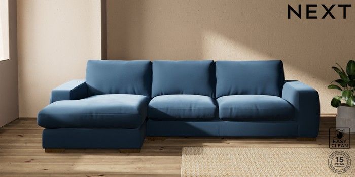 7.2.10 Houghton Deep Relaxed Sit Large Sofa Chaise - Left Hand Plush Velvet Easy Clean Airforce Blue Large Square Angle - Mid | Made Click here to use our website with more accessibility support, for example screen readers
