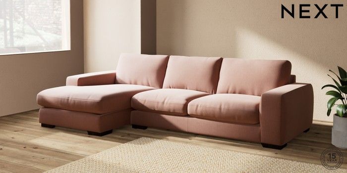 7.2.10 Houghton Deep Relaxed Sit Large Sofa Chaise - Left Hand Relaxed Linen Look Light Rust Brown Large Square Angle - Dark | Made Click here to use our website with more accessibility support, for example screen readers