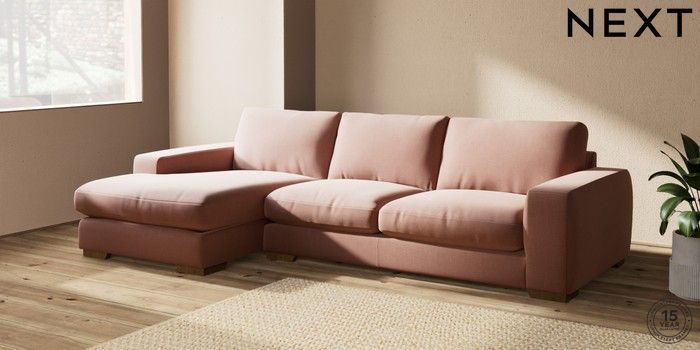 7.2.10 Houghton Deep Relaxed Sit Large Sofa Chaise - Left Hand Relaxed Linen Look Light Rust Brown Large Square Angle - Mid | Made Click here to use our website with more accessibility support, for example screen readers