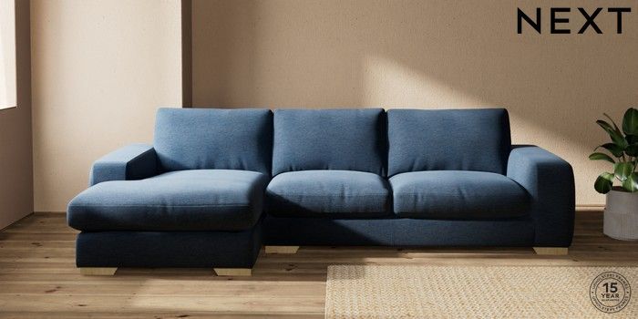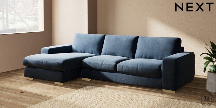 7.2.10 Houghton Deep Relaxed Sit Large Sofa Chaise - Left Hand Ripple Chenille Dark Blue Large Square Angle - Light | Made Click here to use our website with more accessibility support, for example screen readers