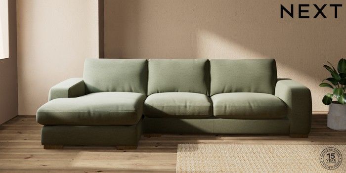 7.2.10 Houghton Deep Relaxed Sit Large Sofa Chaise - Left Hand Ripple Chenille Mid Moss Green Large Square Angle - Mid | Made Click here to use our website with more accessibility support, for example screen readers