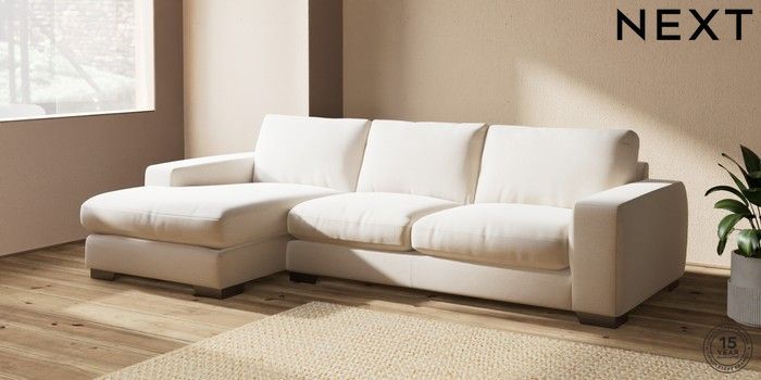 7.2.10 Houghton Deep Relaxed Sit Large Sofa Chaise - Left Hand Studio Chenille Oyster Large Square Angle - Gunmetal | Made Click here to use our website with more accessibility support, for example screen readers