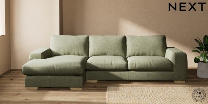 7.2.10 Houghton Deep Relaxed Sit Large Sofa Chaise - Left Hand Tweedy Chenille Mid Moss Green Large Square Angle - Light | Made Click here to use our website with more accessibility support, for example screen readers