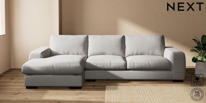 7.2.10 Houghton Deep Relaxed Sit Large Sofa Chaise - Left Hand Woven Chenille Easy Clean Light Grey Large Square Angle - Dark | Made Click here to use our website with more accessibility support, for example screen readers