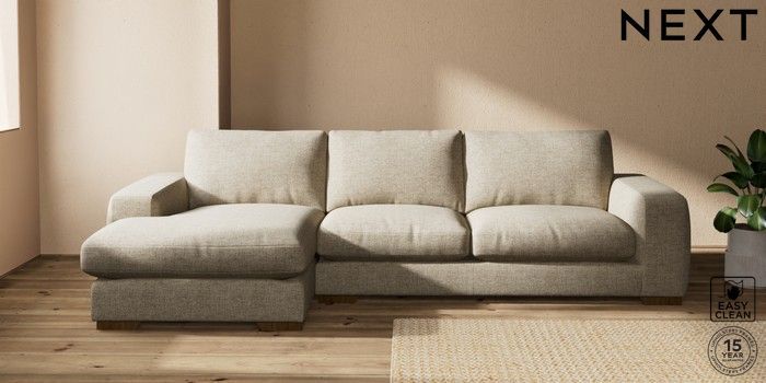 7.2.10 Houghton Deep Relaxed Sit Large Sofa Chaise - Left Hand Woven Chenille Easy Clean Mid Natural Large Square Angle - Mid | Made Click here to use our website with more accessibility support, for example screen readers