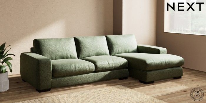 7.2.10 Houghton Deep Relaxed Sit Large Sofa Chaise - Right Hand Boucle Chenille Dark Moss Green Large Square Angle - Dark | Made Click here to use our website with more accessibility support, for example screen readers