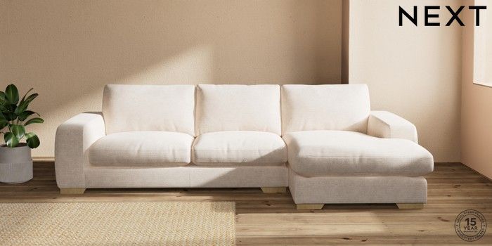 7.2.10 Houghton Deep Relaxed Sit Large Sofa Chaise - Right Hand Boucle Chenille Oyster Large Square Angle - Light | Made Click here to use our website with more accessibility support, for example screen readers