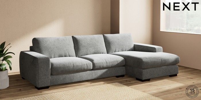 7.2.10 Houghton Deep Relaxed Sit Large Sofa Chaise - Right Hand Chunky Chenille Dark Grey Large Square Angle - Dark | Made Click here to use our website with more accessibility support, for example screen readers