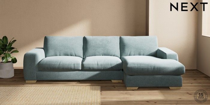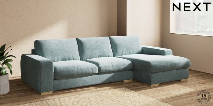 7.2.10 Houghton Deep Relaxed Sit Large Sofa Chaise - Right Hand Chunky Chenille Light Teal Green Large Square Angle - Light | Made Click here to use our website with more accessibility support, for example screen readers