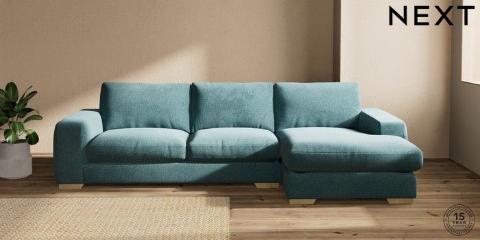 7.2.10 Houghton Deep Relaxed Sit Large Sofa Chaise - Right Hand Chunky Chenille Mid Teal Green Large Square Angle - Light | Made Click here to use our website with more accessibility support, for example screen readers