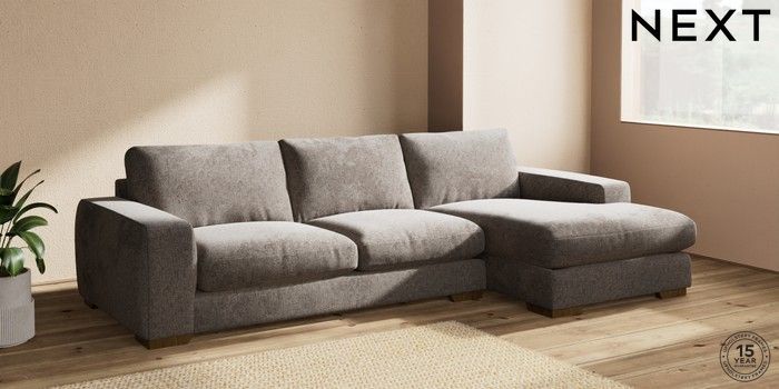 7.2.10 Houghton Deep Relaxed Sit Large Sofa Chaise - Right Hand Chunky Chenille Mink Brown Large Square Angle - Mid | Made Click here to use our website with more accessibility support, for example screen readers