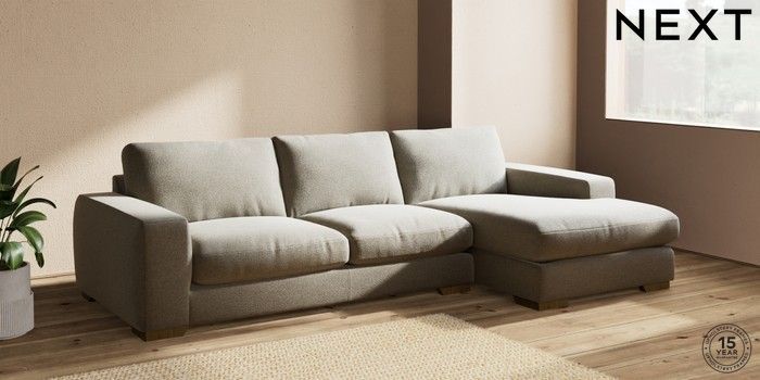 7.2.10 Houghton Deep Relaxed Sit Large Sofa Chaise - Right Hand Chunky Marl Light Olive Green Large Square Angle - Mid | Made Click here to use our website with more accessibility support, for example screen readers