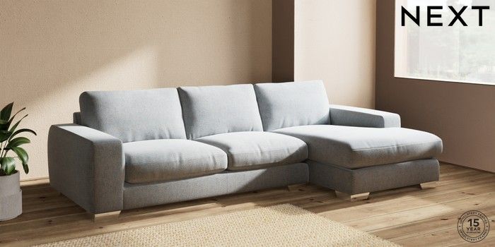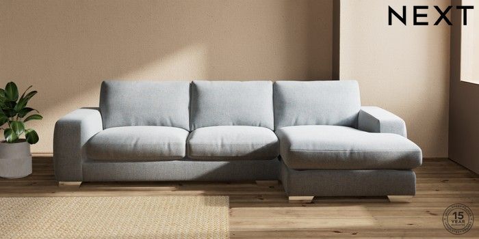 7.2.10 Houghton Deep Relaxed Sit Large Sofa Chaise - Right Hand Chunky Marl Mid Grey Large Square Angle - Chrome Metal | Made Click here to use our website with more accessibility support, for example screen readers