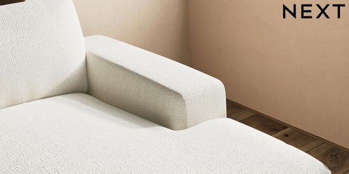 7.2.10 Houghton Deep Relaxed Sit Large Sofa Chaise - Right Hand Chunky Texture Oyster Large Square Angle - Brushed Brass | Made Click here to use our website with more accessibility support, for example screen readers