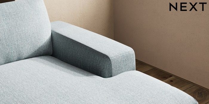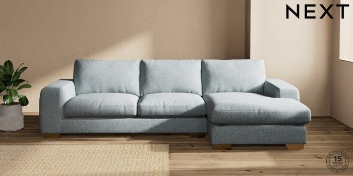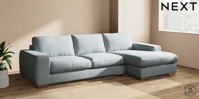 7.2.10 Houghton Deep Relaxed Sit Large Sofa Chaise - Right Hand Chunky Weave Mid Blue Large Square Angle - Brushed Brass | Made Click here to use our website with more accessibility support, for example screen readers