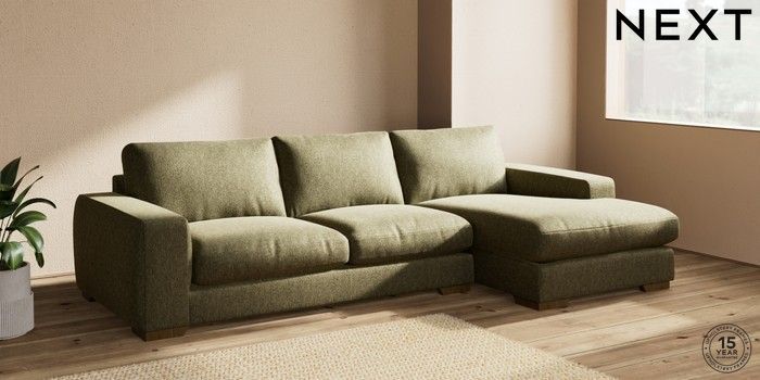 7.2.10 Houghton Deep Relaxed Sit Large Sofa Chaise - Right Hand Cotswold Chenille Dark Green Large Square Angle - Mid | Made Click here to use our website with more accessibility support, for example screen readers