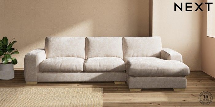7.2.10 Houghton Deep Relaxed Sit Large Sofa Chaise - Right Hand Distressed Velour Mid Natural Large Square Angle - Light | Made Click here to use our website with more accessibility support, for example screen readers