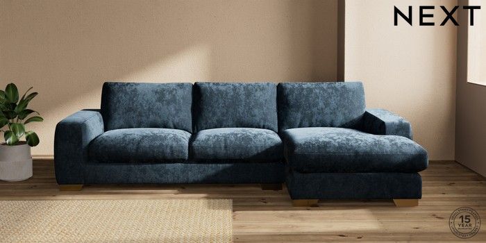 7.2.10 Houghton Deep Relaxed Sit Large Sofa Chaise - Right Hand Distressed Velour Midnight Blue Large Square Angle - Brushed Brass | Made Click here to use our website with more accessibility support, for example screen readers