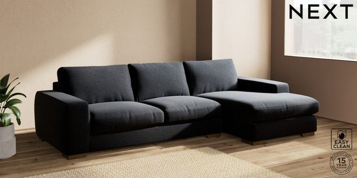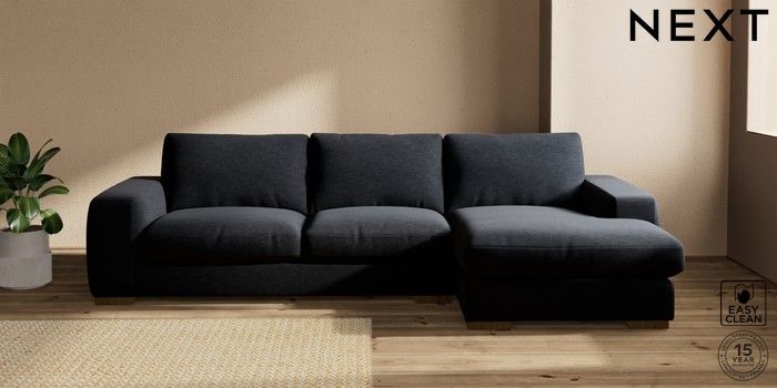 7.2.10 Houghton Deep Relaxed Sit Large Sofa Chaise - Right Hand Fine Chenille Easy Clean Black Large Square Angle - Mid | Made Click here to use our website with more accessibility support, for example screen readers