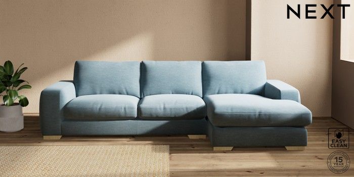 7.2.10 Houghton Deep Relaxed Sit Large Sofa Chaise - Right Hand Fine Chenille Easy Clean Mid Blue Large Square Angle - Light | Made Click here to use our website with more accessibility support, for example screen readers