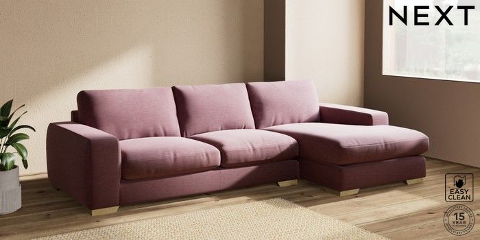 7.2.10 Houghton Deep Relaxed Sit Large Sofa Chaise - Right Hand Fine Chenille Easy Clean Mid Mulberry Purple Large Square Angle - Light | Made Click here to use our website with more accessibility support, for example screen readers