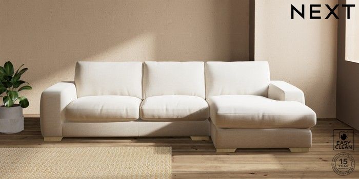 7.2.10 Houghton Deep Relaxed Sit Large Sofa Chaise - Right Hand Fine Chenille Easy Clean Oyster Large Square Angle - Light | Made Click here to use our website with more accessibility support, for example screen readers