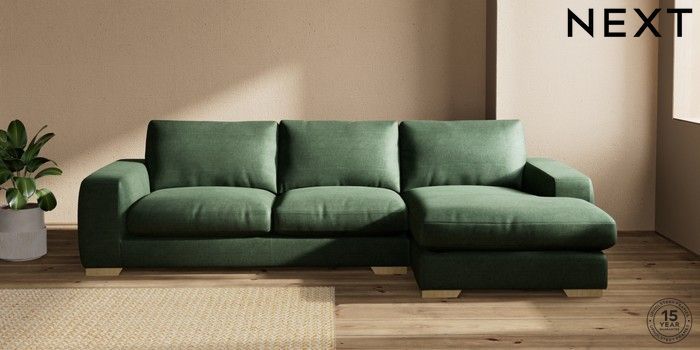 7.2.10 Houghton Deep Relaxed Sit Large Sofa Chaise - Right Hand Luxe Chenille Dark Green Large Square Angle - Light | Made Click here to use our website with more accessibility support, for example screen readers