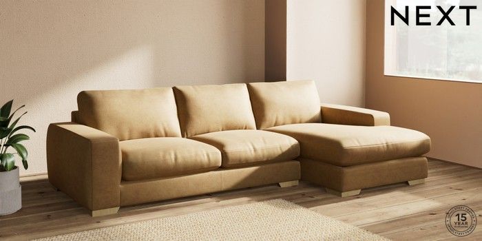 7.2.10 Houghton Deep Relaxed Sit Large Sofa Chaise - Right Hand Luxe Chenille Honey Yellow Large Square Angle - Light | Made Click here to use our website with more accessibility support, for example screen readers