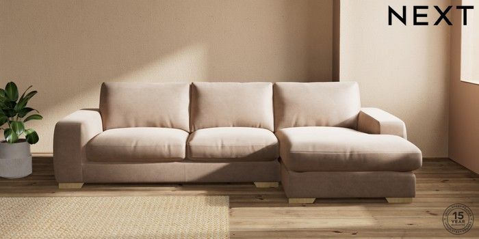 7.2.10 Houghton Deep Relaxed Sit Large Sofa Chaise - Right Hand Luxe Chenille Mid Natural Large Square Angle - Light | Made Click here to use our website with more accessibility support, for example screen readers