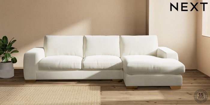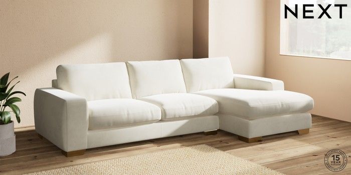 7.2.10 Houghton Deep Relaxed Sit Large Sofa Chaise - Right Hand Luxe Chenille Oyster Large Square Angle - Brushed Brass | Made Click here to use our website with more accessibility support, for example screen readers