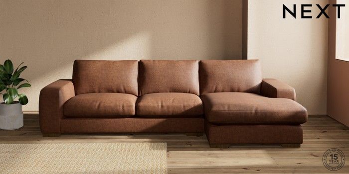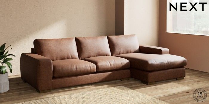 7.2.10 Houghton Deep Relaxed Sit Large Sofa Chaise - Right Hand Monza Faux Leather Easy Clean Chestnut Brown Large Square Angle - Mid | Made Click here to use our website with more accessibility support, for example screen readers