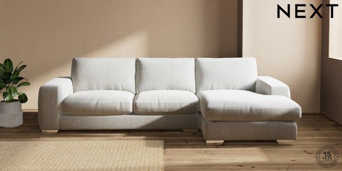 7.2.10 Houghton Deep Relaxed Sit Large Sofa Chaise - Right Hand Multi Weave Light Blue Large Square Angle - Chrome Metal | Made Click here to use our website with more accessibility support, for example screen readers