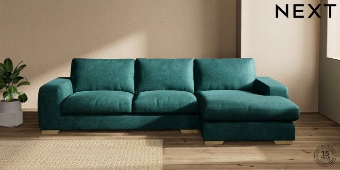 7.2.10 Houghton Deep Relaxed Sit Large Sofa Chaise - Right Hand Plush Chenille Dark Teal Green Large Square Angle - Light | Made Click here to use our website with more accessibility support, for example screen readers