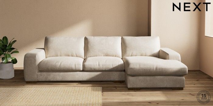 7.2.10 Houghton Deep Relaxed Sit Large Sofa Chaise - Right Hand Plush Chenille Light Natural Large Square Angle - Mid | Made Click here to use our website with more accessibility support, for example screen readers
