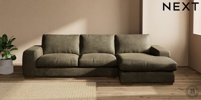 7.2.10 Houghton Deep Relaxed Sit Large Sofa Chaise - Right Hand Plush Chenille Moss Green Large Square Angle - Mid | Made Click here to use our website with more accessibility support, for example screen readers