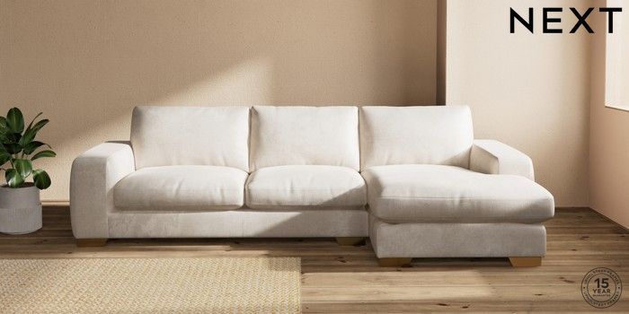 7.2.10 Houghton Deep Relaxed Sit Large Sofa Chaise - Right Hand Plush Chenille Oyster Large Square Angle - Brushed Brass | Made Click here to use our website with more accessibility support, for example screen readers