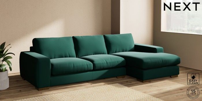 7.2.10 Houghton Deep Relaxed Sit Large Sofa Chaise - Right Hand Plush Velvet Easy Clean Bottle Green Large Square Angle - Mid | Made Click here to use our website with more accessibility support, for example screen readers