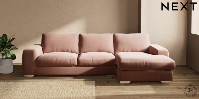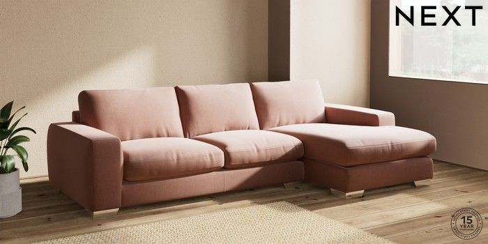 7.2.10 Houghton Deep Relaxed Sit Large Sofa Chaise - Right Hand Relaxed Linen Look Light Rust Brown Large Square Angle - Chrome Metal | Made Click here to use our website with more accessibility support, for example screen readers