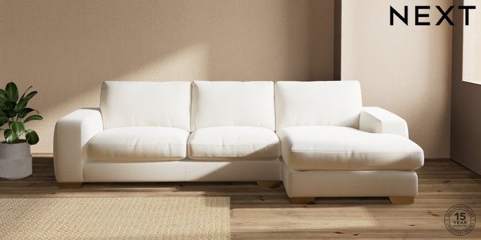 7.2.10 Houghton Deep Relaxed Sit Large Sofa Chaise - Right Hand Ripple Chenille Oyster Large Square Angle - Brushed Brass | Made Click here to use our website with more accessibility support, for example screen readers