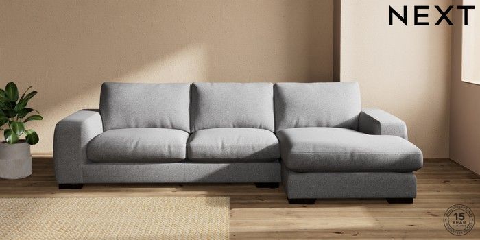 7.2.10 Houghton Deep Relaxed Sit Large Sofa Chaise - Right Hand Studio Chenille Mid Grey Large Square Angle - Dark | Made Click here to use our website with more accessibility support, for example screen readers