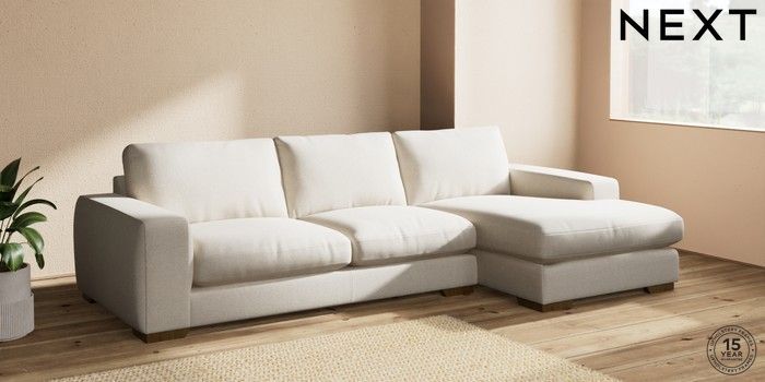 7.2.10 Houghton Deep Relaxed Sit Large Sofa Chaise - Right Hand Tweedy Chenille Oyster Large Square Angle - Mid | Made Click here to use our website with more accessibility support, for example screen readers