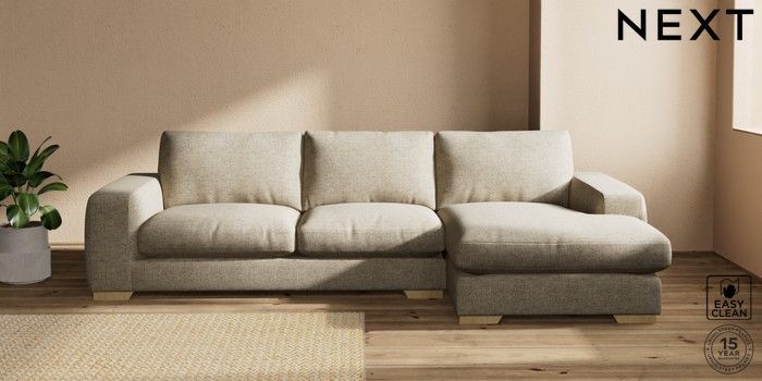 7.2.10 Houghton Deep Relaxed Sit Large Sofa Chaise - Right Hand Woven Chenille Easy Clean Mid Natural Large Square Angle - Light | Made Click here to use our website with more accessibility support, for example screen readers