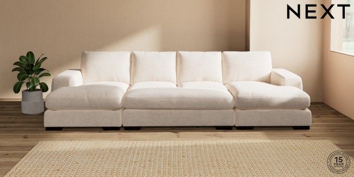 7.2.10 Houghton Deep Relaxed Sit Large - U Shaped Double Chaise with Footstool Boucle Chenille Oyster Large Square Angle - Dark | Made Click here to use our website with more accessibility support, for example screen readers
