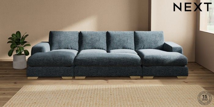 7.2.10 Houghton Deep Relaxed Sit Large - U Shaped Double Chaise with Footstool Chunky Chenille Dark Navy Blue Large Square Angle - Light | Made Click here to use our website with more accessibility support, for example screen readers